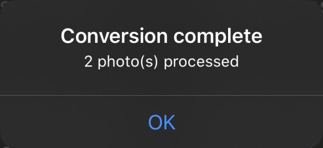 - You’ll then see a confirmation dialog box with the number of photos that were successfully converted.