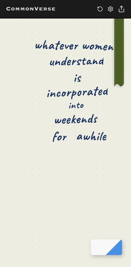 New words drop at midnight in your timezone. They’re a mix of nouns, verbs, and adjectives, enough to build something with. There’s a bin in the corner where you can drag unwanted words to, freeing up some space. You’ll also find a few connector words stashed in the bin every day to help you create your masterpiece. Tap words once to make them bigger. When you’re done composing, click the Share icon to save an image with the day’s date.
