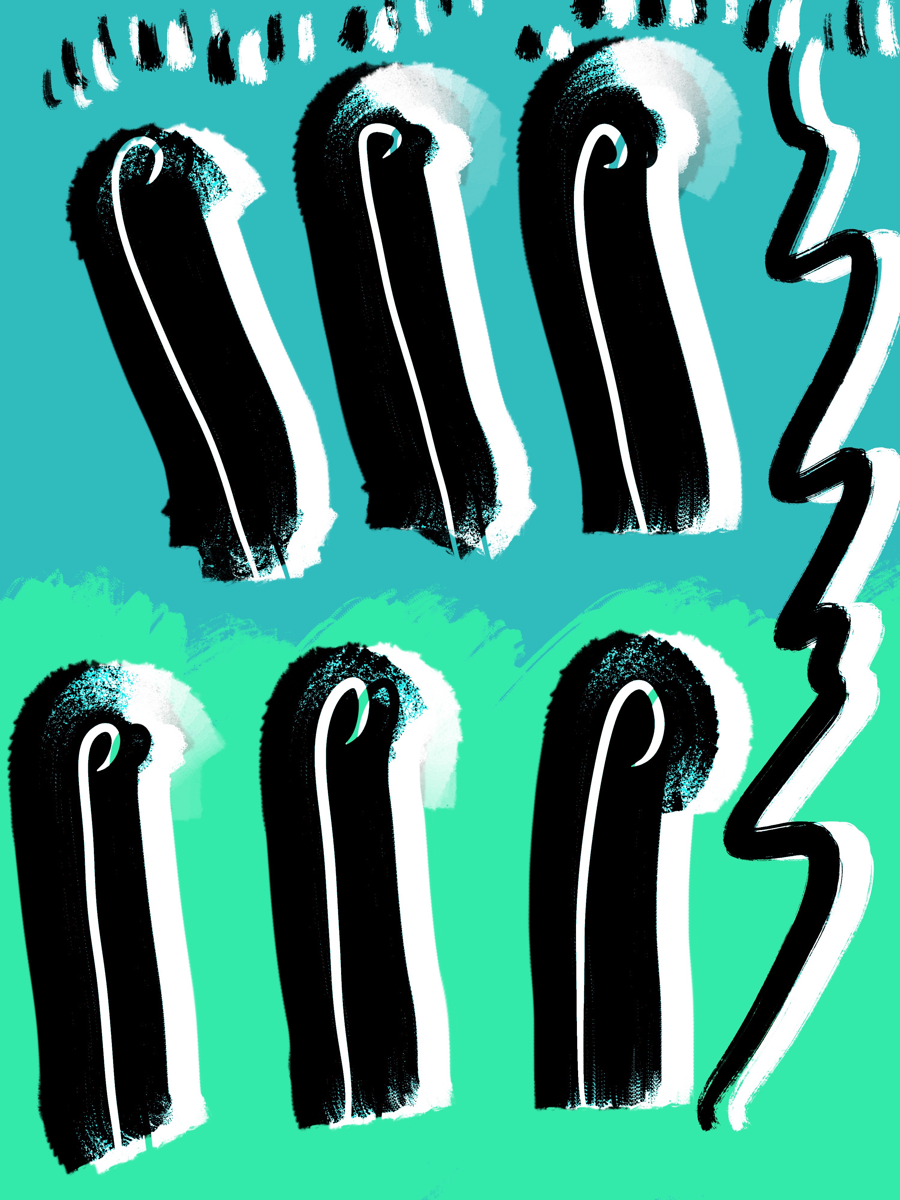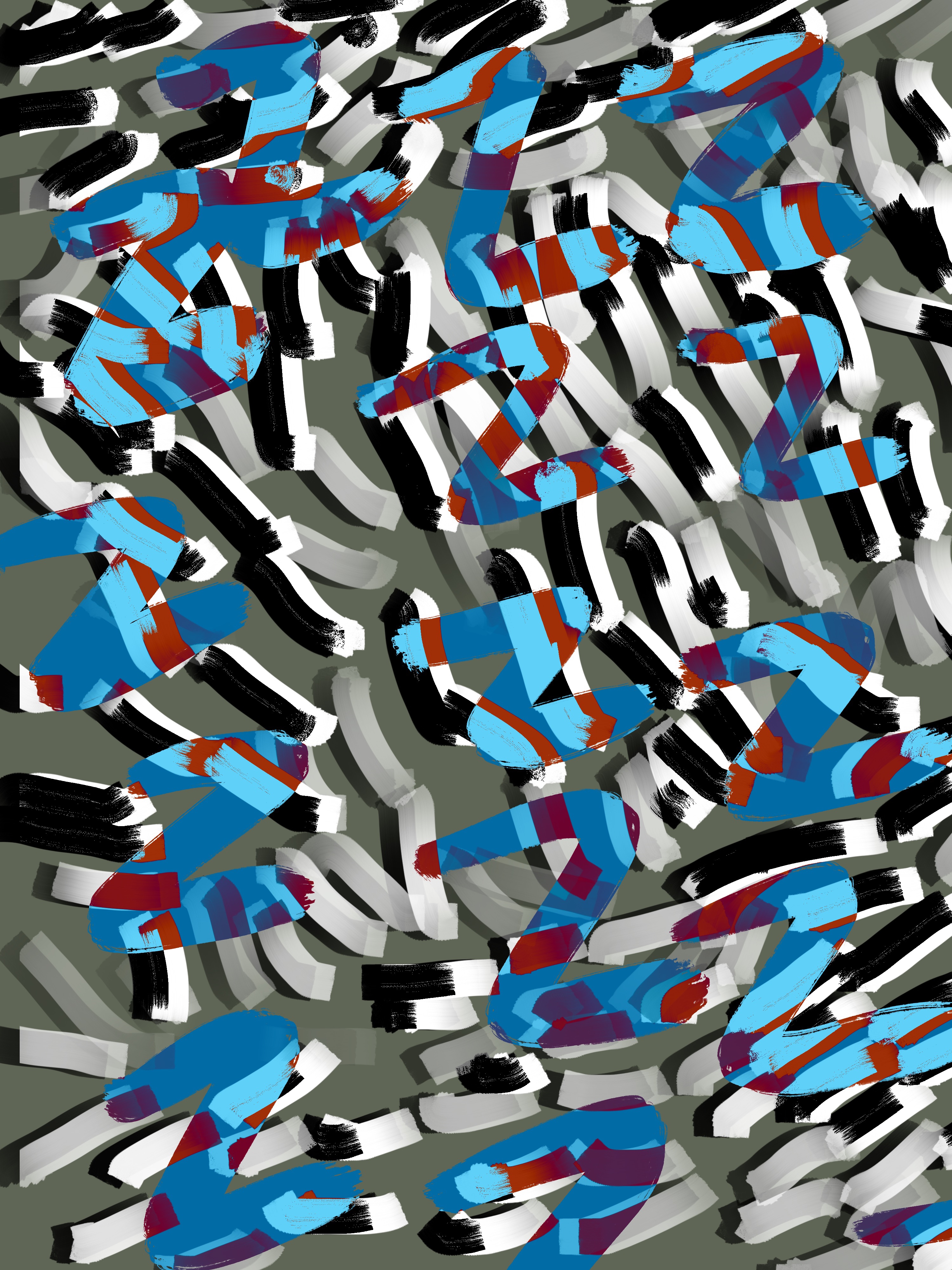Recursively inspired by automatic drawing and generative art, each piece is made without intentional direction, using a small but continually expanding vocabulary of elements that occur, repeat, and evolve freely over the creative process. Some may cause you to feel a sudden and inexplicable affinity, affirming the connectedness of our lived experiences.