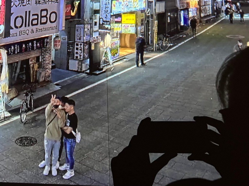 2) The Kabukicho webcam mentioned in previous weeks is still my background video feed of choice. I’ve decided to embark on a new project where I blow up this live scene onto a wall with my projector, watch it intently, and take photos (not screenshots) of interesting things happening. It’s street photography, but remotely!