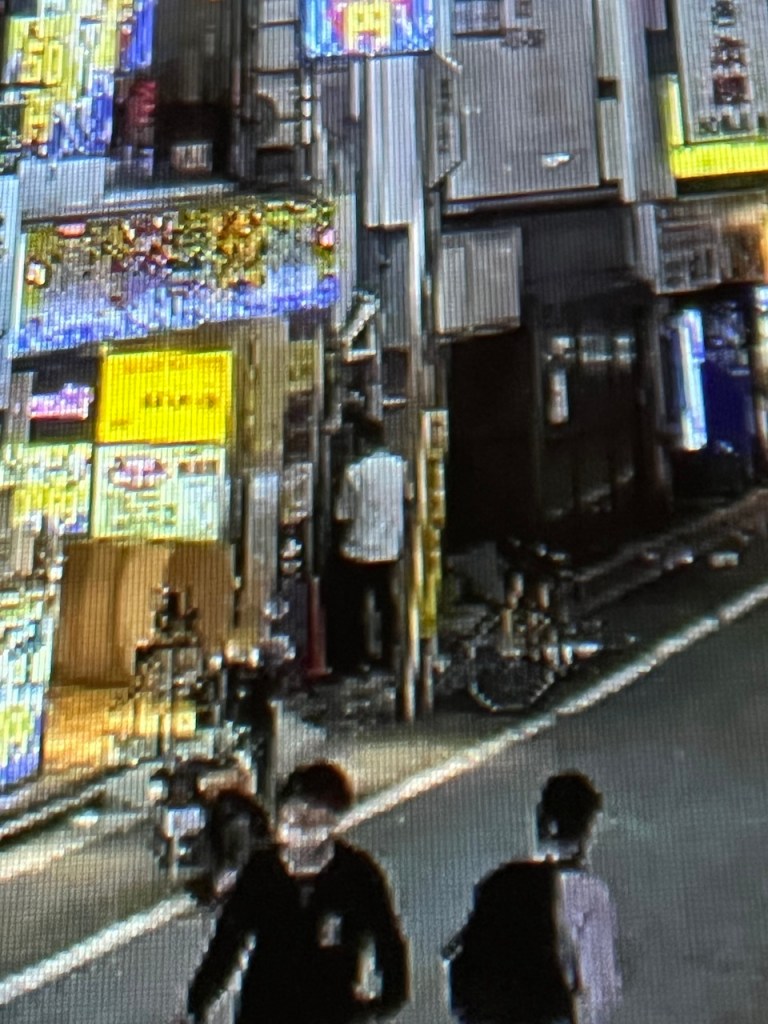 Sure I’m restricted to just one angle, but for all purposes it’s a covid-era adaptation to not actually being there to document life on a seedy rat-infested street in a red-light district. And without the threat of being beaten up, as a bonus! The results are filtered through the mediation of space, codecs, optics, light; they look more pixel art than photos. But still street photography, one could argue! Sometimes you’ll see shadows cast by my body or items in my environment. It has layers of removal, but still ultimately real life in Shinjuku. I’ve just started, but already I’ve got a lady flashing her underwear to passers by, a man peeing against a wall after midnight, police stopping an altercation, people mugging for the camera…