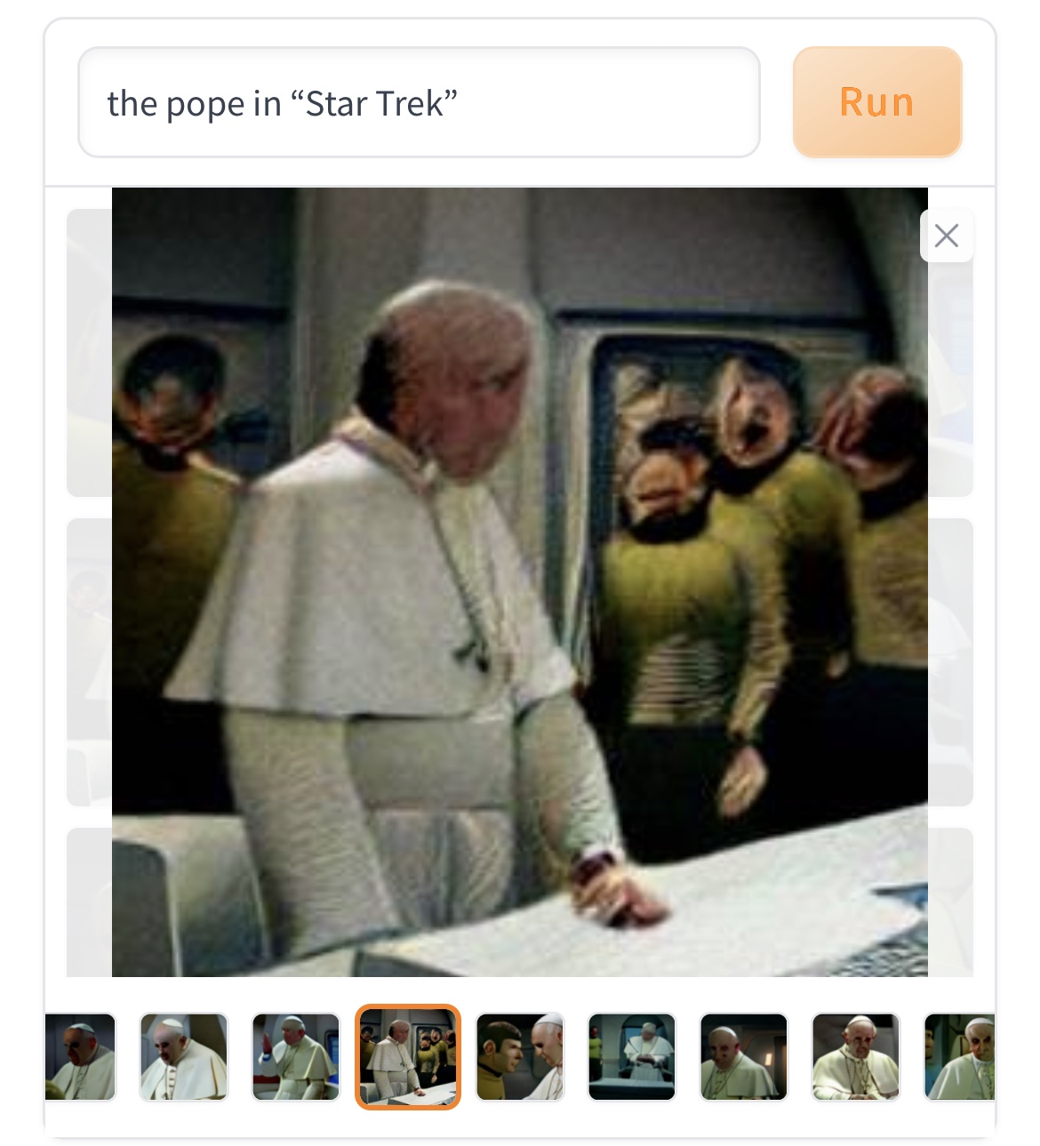 You can bring some really wrong ideas to life with this, which I’ve seen and admittedly also tried, things involving deceased personalities in historically unlikely scenarios, for example. Mostly I’ve just cracked myself up trying to create frames from movies that never happened, and things that are mundane yet just enough surreal. I now desire more power, so if anyone has an invite to Midjourney or any of the other proper tools out there, let me know.