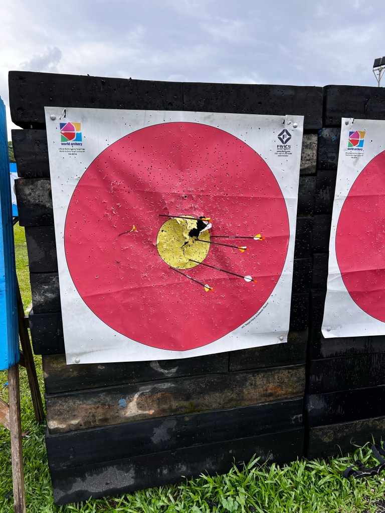 We were bringing our nephew out for an introductory archery experience as part of his Christmas gift. He was running around and excited for it. Kids seem to be impervious to environmental discomfort when they’re having fun. I shot a few arrows. It’s a disturbingly easy weapon to operate. After about half an hour and 20 tries we were markedly better than when we began, hitting the middle of the target often enough. Thanks to our strict gun laws, I never worry about encountering an armed lunatic in everyday life but now I may have to start worrying about bows and arrows in the wild. There were little Korean children, no more than eight years old, practicing beside us and consistently hitting targets maybe 30 meters away. Frightening.