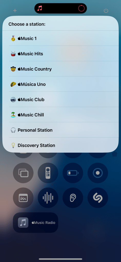 I used to have a Shortcut on my phone to launch Apple Music 1, but with these new stations it seemed time to build a quick launcher. Now, I can start live stations and my personalized stations from the Control Center, Today Screen, or even with the Action Button.