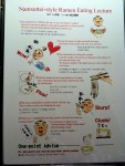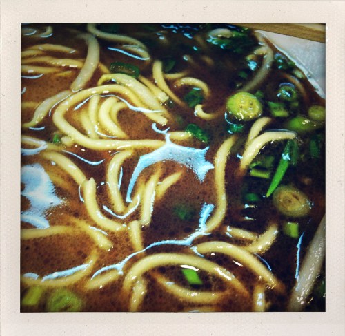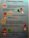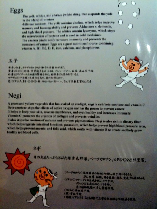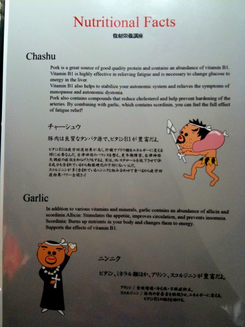 We waited in line for about 20 minutes while the other restaurants were almost completely empty, ironic because Nantsuttei has probably the worst interior design of all the restaurants – its mix of corrugated iron panelling and red faux leather seats looks like an American trailer car diner gone wrong. At least you get the menu while you wait, and it’s full of funny illustrations and instructions on how you should go about slurping your Nantsuttei noodles (spoiler: pretty much the same as anywhere, apart from letting the pork soak for a spell. My advice: how about giving us some fattier meat?). I’ll just let the pictures tell you themselves.The basic ramen I had for $12 was worth coming back for, even if it only had one slice of lean roast pork. The soup and signature layer of black “ma-yu” oil topped with spring onions work together well; it never crosses your mind to worry about garlic breath. Noodle density is comfortably in the middle of the scale, with the firm end represented by Ippudo’s wiry, crunchy strands, and the spongy end by the 2-minute instant variety I eat every other night. You get a fair amount of them too. $17 gets you all the trimmings: extra negi, pork, and vegetables, to which you might want to add another dollar for a runny “hot spring” egg.